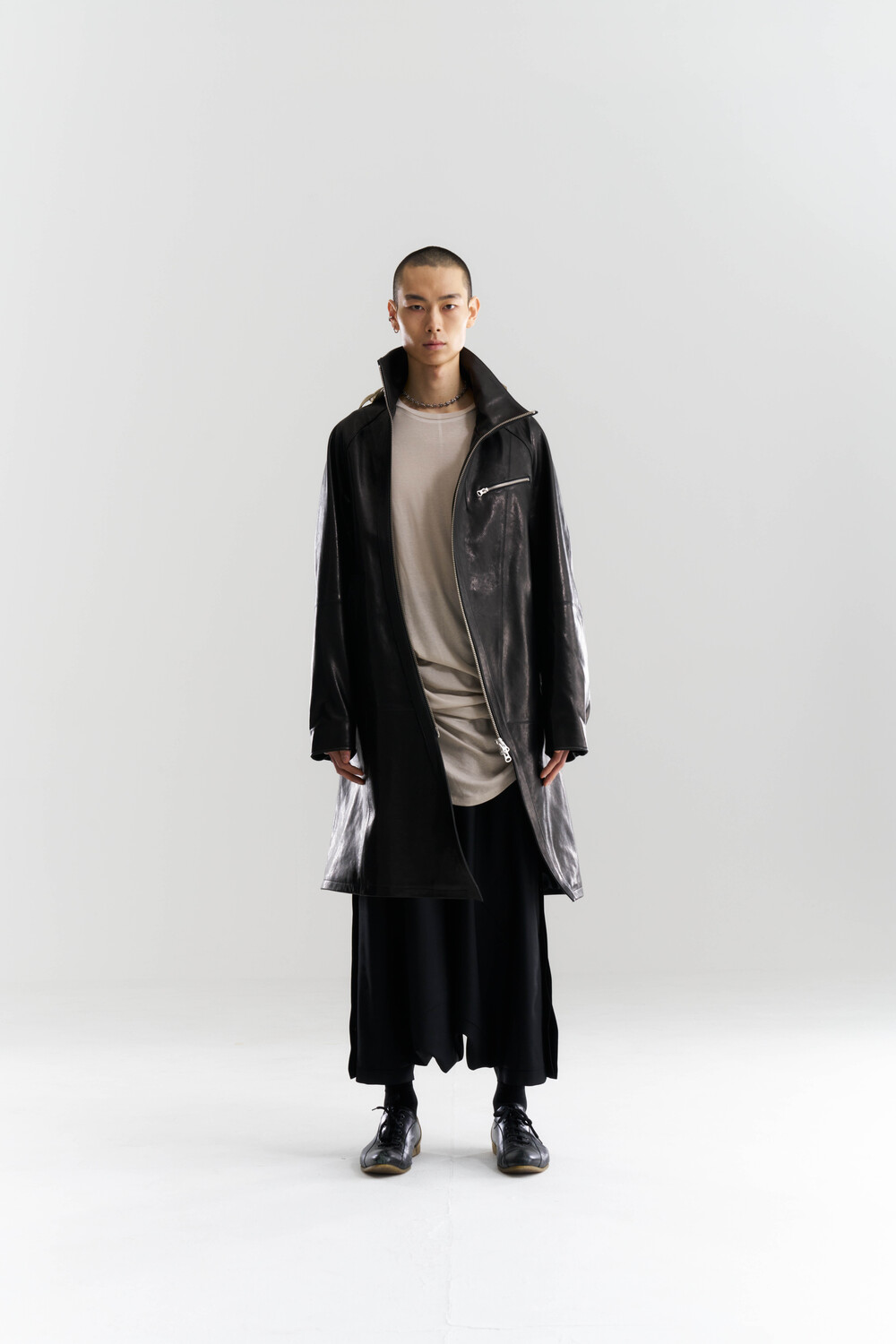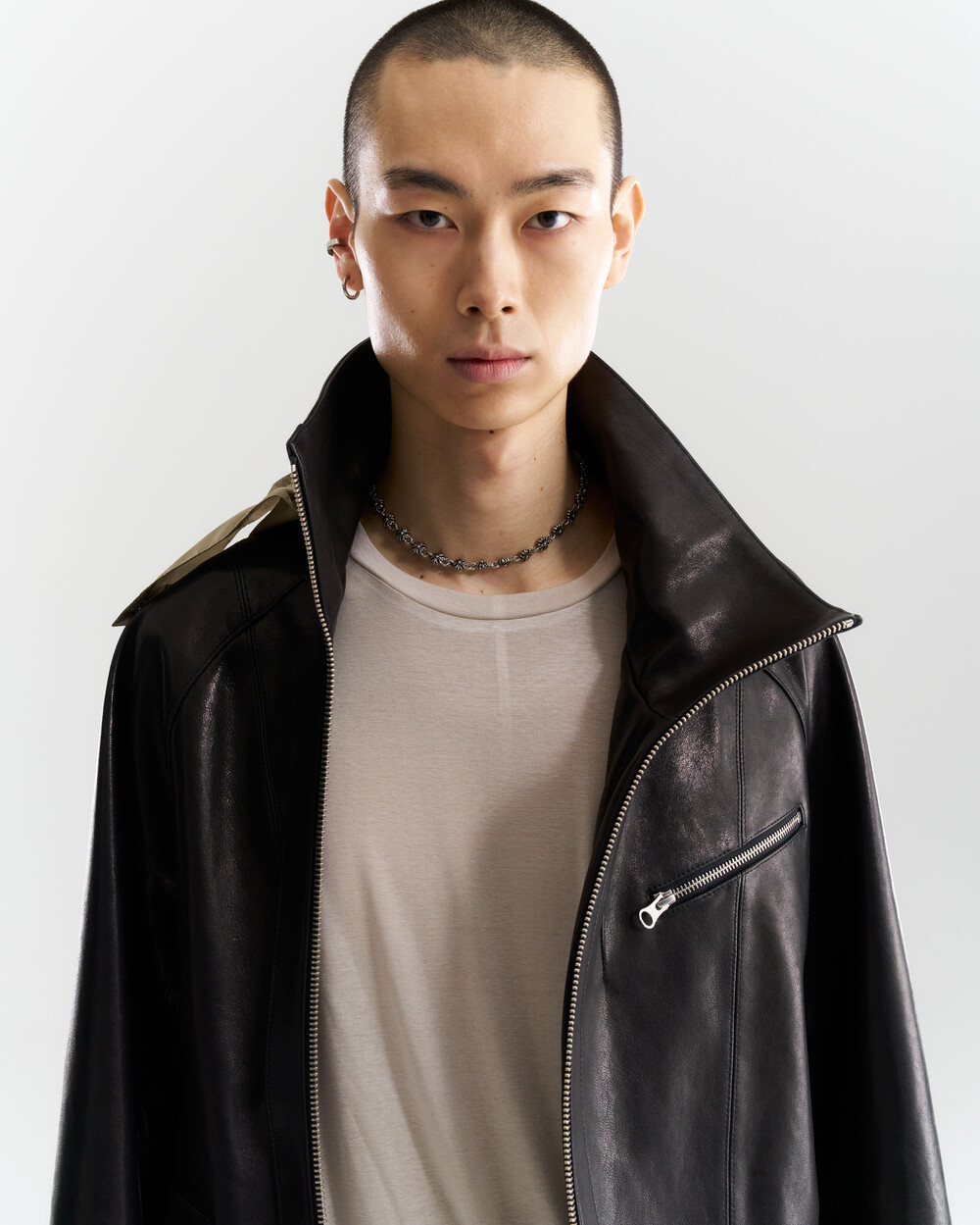사이드 6개의 턱과 넓은 네크라인 디테일